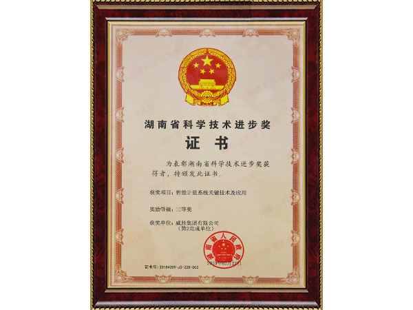 湖南省科学技术进步奖(智能计量系统关键技术及应用三等奖)