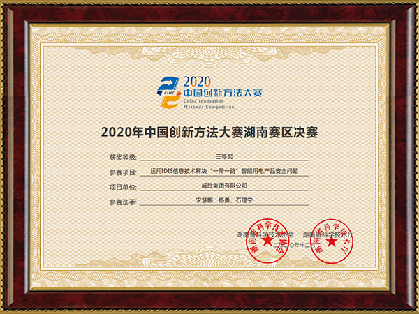 2020年中国创新方法大赛湖南赛区决赛三等奖(运动IDIS信息技术解决“一带一路”智能用电产品安全问题)