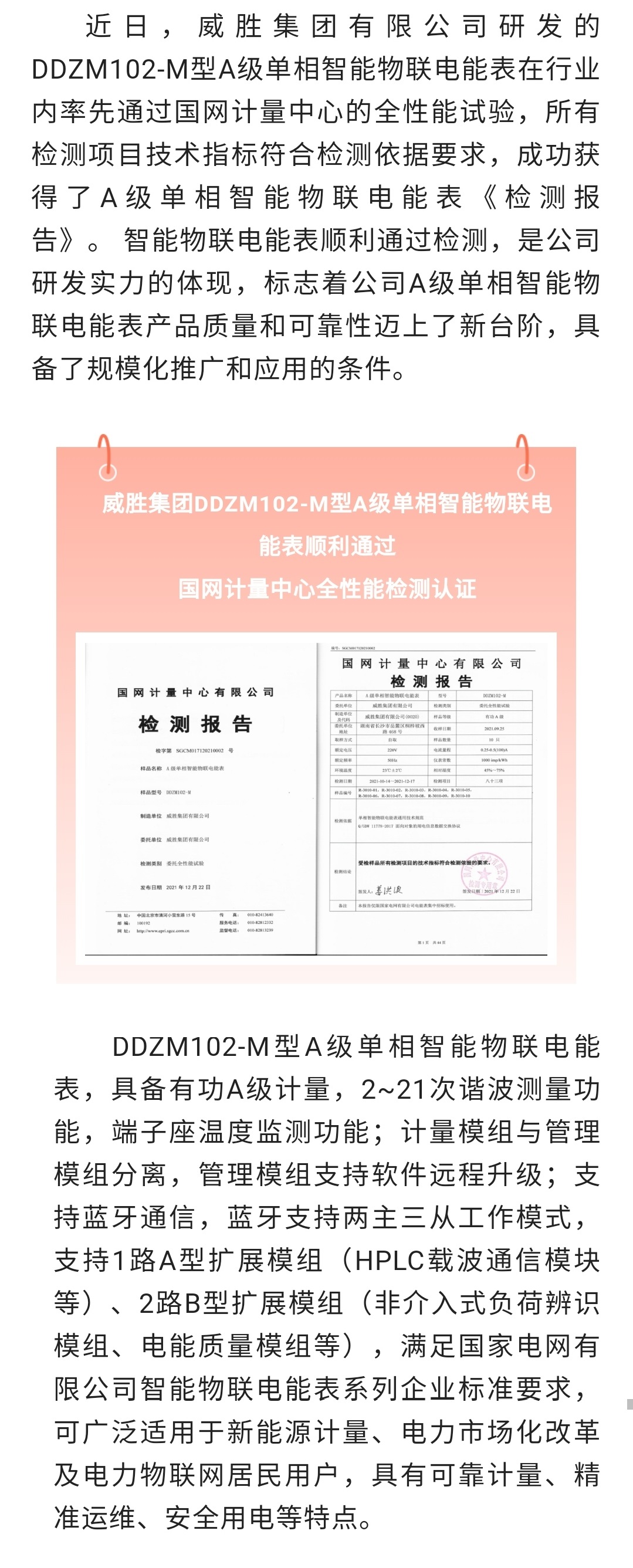 新年伊始,双喜临门!威胜集团单相智能物联电能通过国网计量中心全性能检测认证及荣获2021年度中国仪器仪表学会科技进步一等奖!