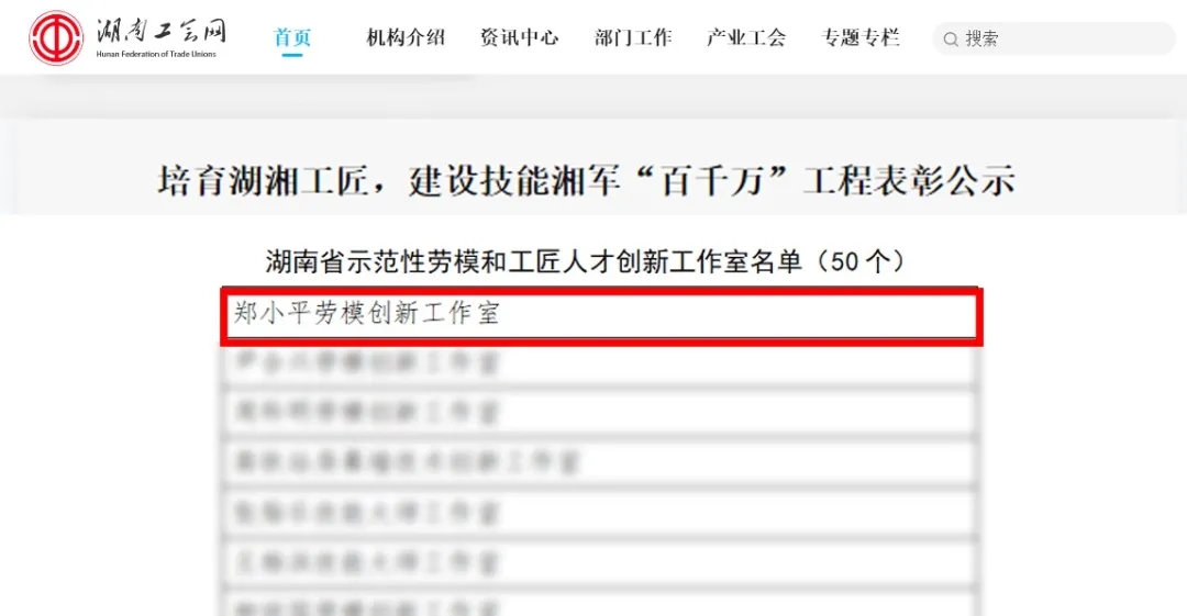 “郑小平劳模创新工作室”获评“湖南省示范性劳模和工匠人才创新工作室”