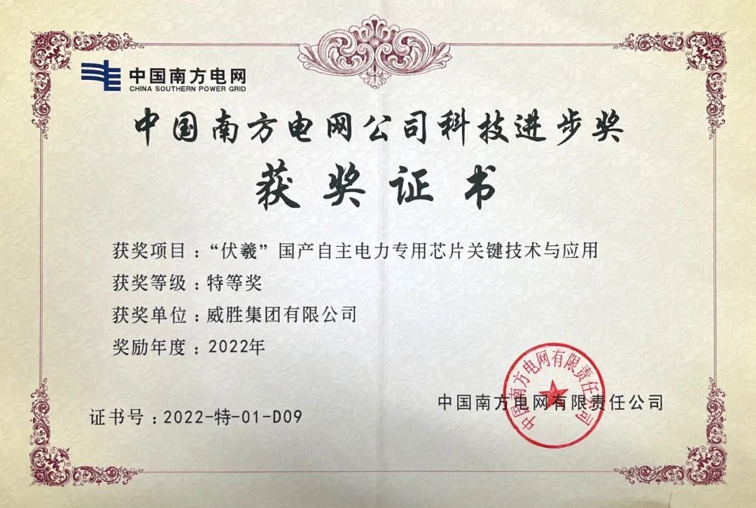大展宏“兔”,喜讯盈门。近日,威胜集团有限公司参与的“伏羲”国产自主电力专用芯片关键技术与应用项目荣获中国南方电网公司科技进步奖特等奖。
