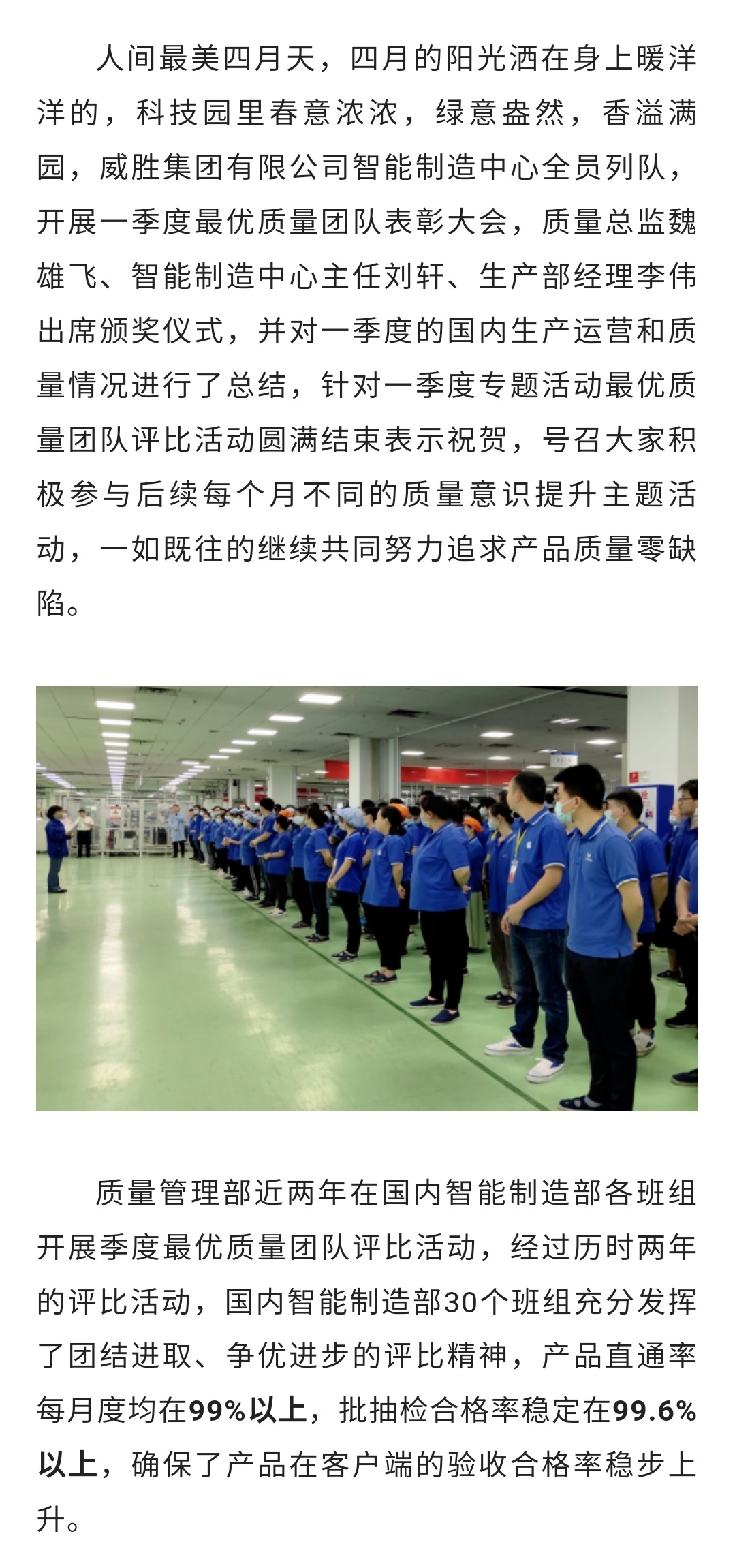 质量专题活动|威胜集团智能制造中心质量团队评优表彰