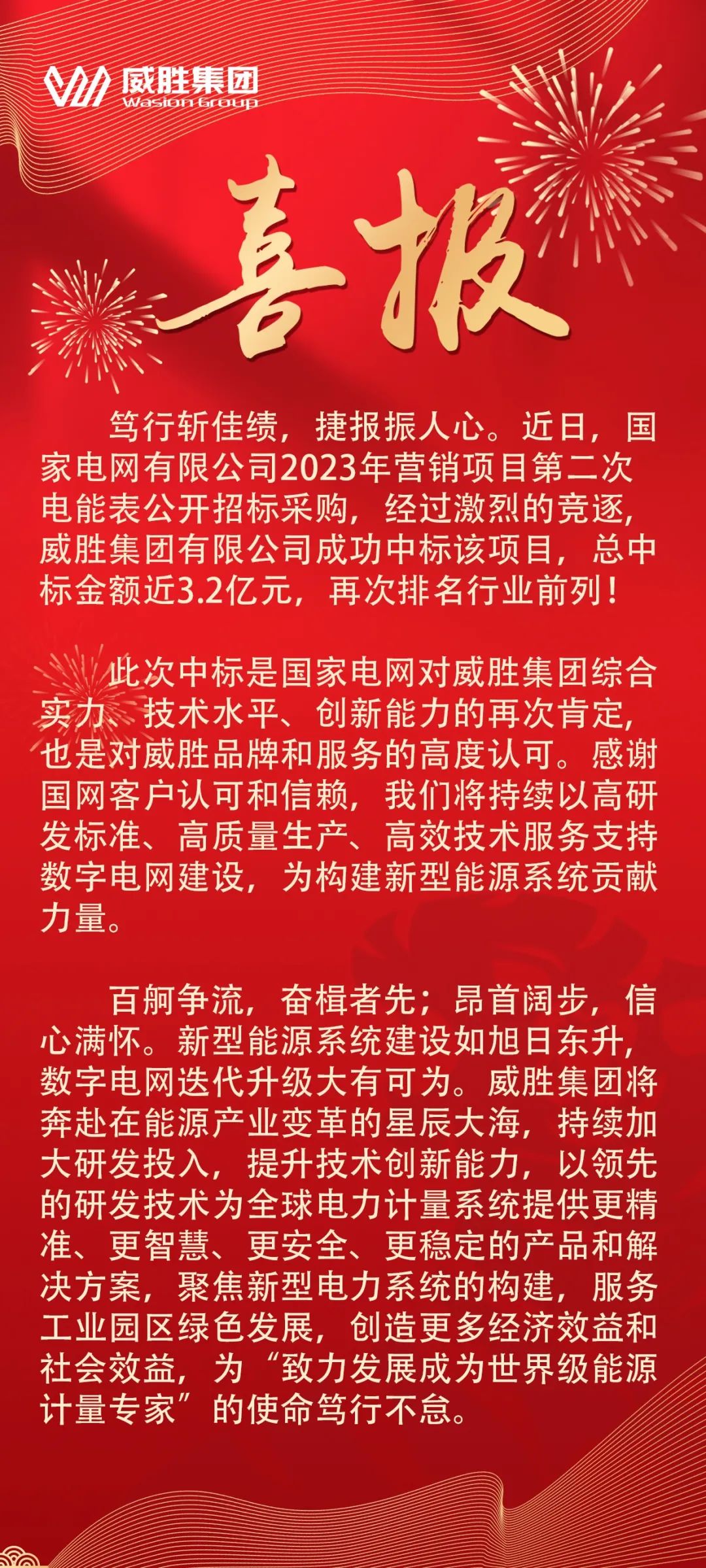 喜报 | 威胜集团中标国家电网招标项目,总中标金额近3.2亿元