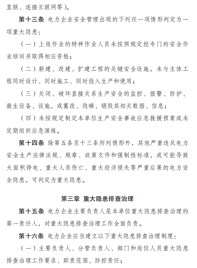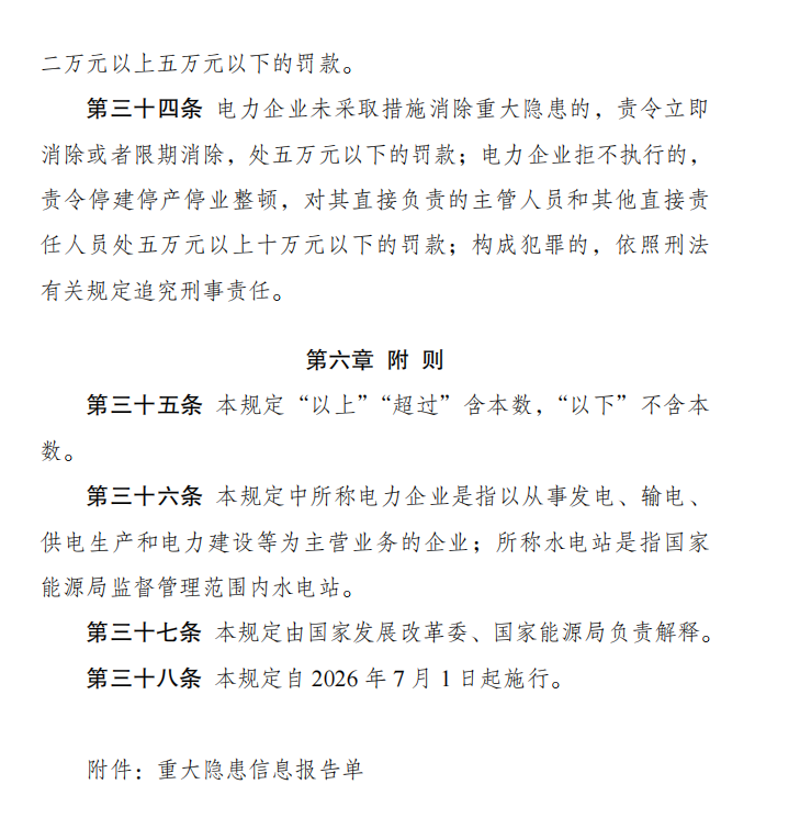 4月9日,国家发改委发布第41号中华人民共和国国家发展和改革委员会令,公布《电力重大事故隐患判定标准及治理监督管理规定》,实施时间:2026-07-01。