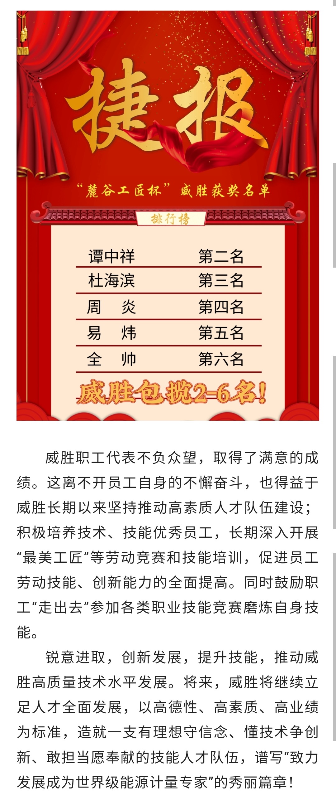 2021年“麓谷工匠杯”技能竞赛活动威胜获奖表彰通报